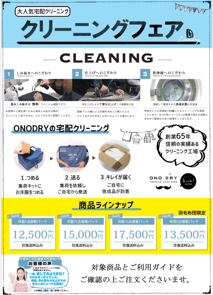 大好評の宅配クリーニング受付中 !【2月1日以降価格改定予定】ご検討の場合はお早目にお申し込みください!